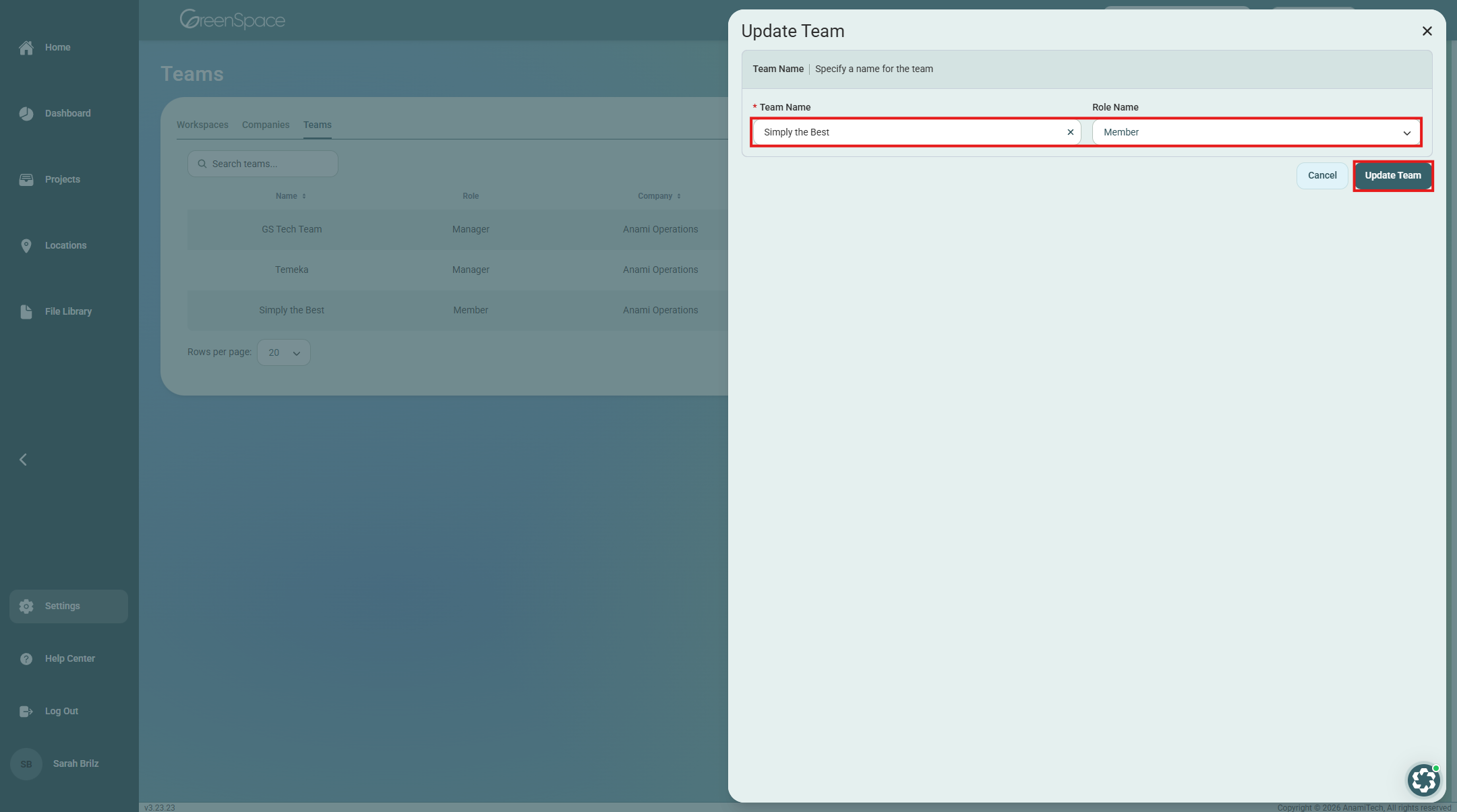 Make your changes and click “Update Team” when finished.