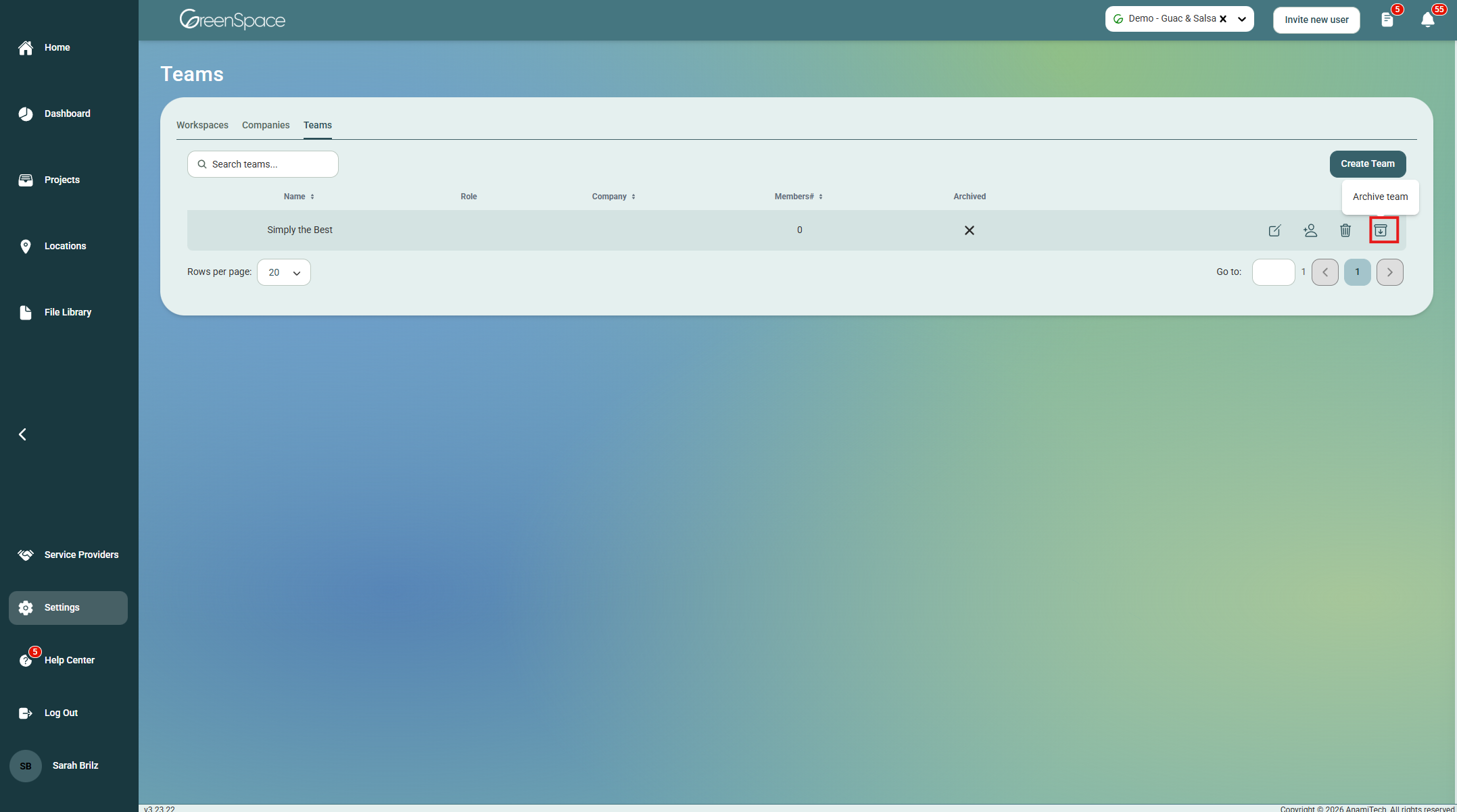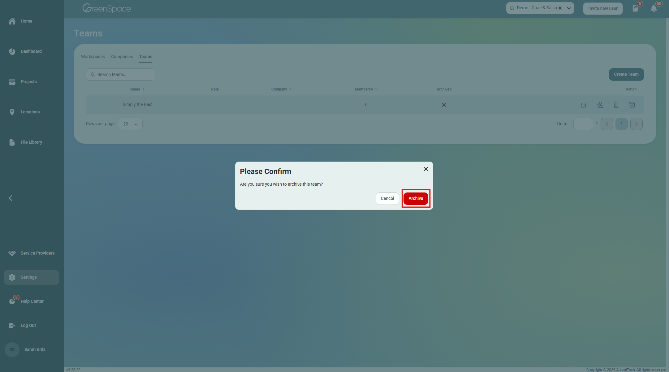 Archive or Unarchive a Team